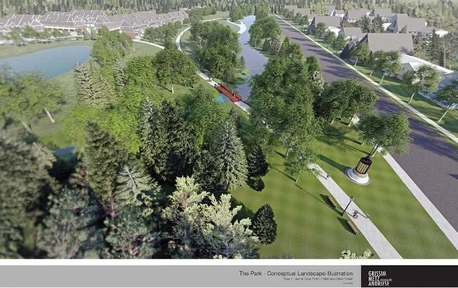 A developed Riverwalk system could someday connect the Mill Race historical district to Hines Drive through trails & walkways that follow along the local waterways.